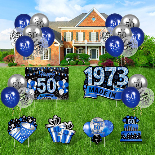 Blue Silver 50th Birthday Balloons for Men Women 18Pcs Navy Blue Silver Vintage 1973 Party Balloons 12 inch Happy 50th Birthday Confetti Latex Balloons for Vintage 50th Birthday Party Decorations
