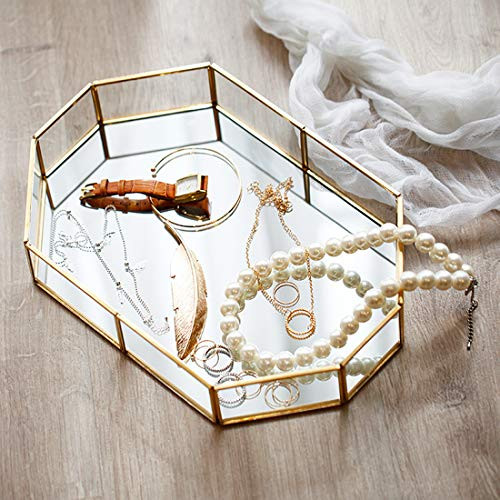 Perfume Organizer, Perfume Tray,Vanity Tray, Jewelry Tray Dresser Tray, Decorative Tray Jewelry Perfume Organizer Makeup Tray Gold Mirror Tray for Vanity, Dresser, Bathroom, Bedroom Gold
