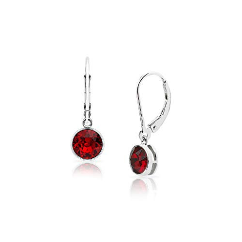 Enjoy the comfort, color and shine of our premium sterling silver 6mm round-cut solitaire swarovski crystal birthstone dangle leverback earrings.