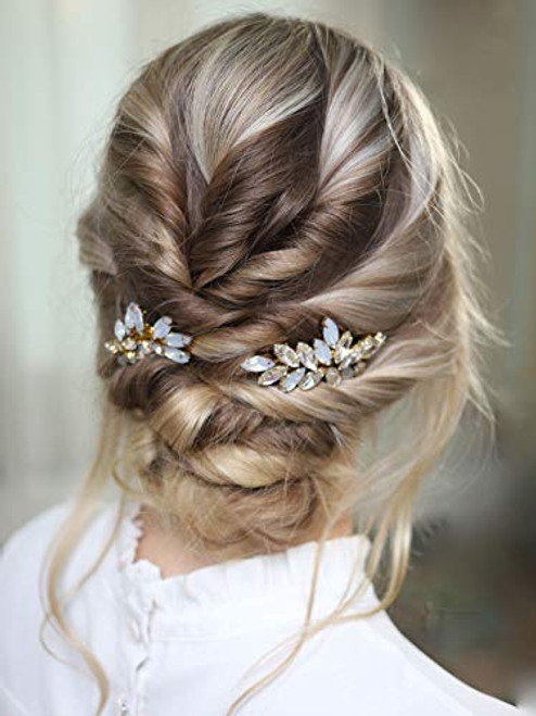 Unsutuo Crystal Bride Wedding Hair Comb Opal Bridal Hair Accessories Rhinestone Wedding Headpieces for Women and Girl (Gold)