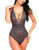 wearella Women Snap Crotch Lingerie Deep V Teddy Bodysuit One Piece Lace Babydoll Grey M